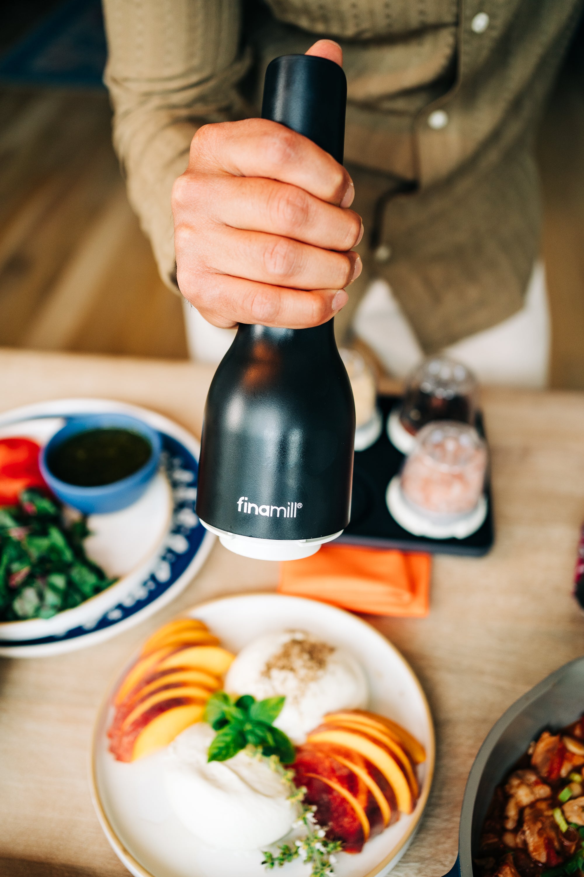 Zestaw Finamill BBQ bateryjny (młynek + 4 pojemniki + tacka)